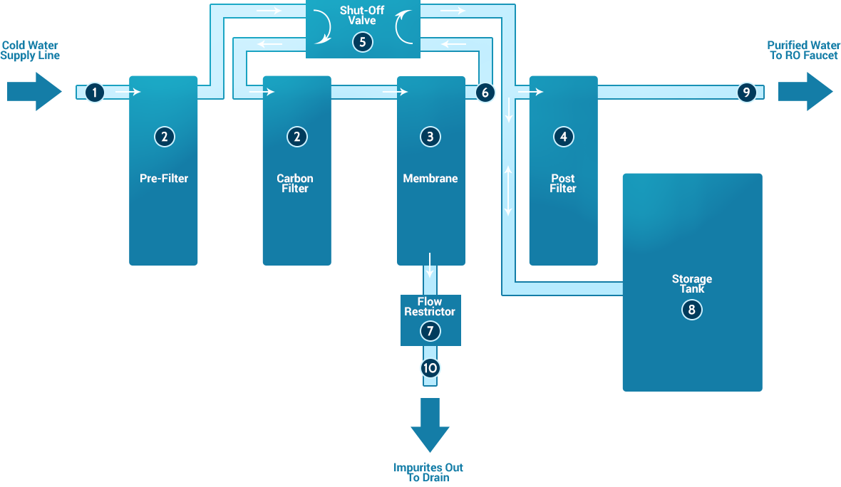 后過濾器: 水離開RO儲(chǔ)罐后,但在進(jìn)入RO水龍頭之前,處理后的水經(jīng)過最終的“后過濾器”。后過濾器通常是碳過濾器。通過后過濾“拋光”過濾器,從產(chǎn)品水中除去任何剩余的味道或氣味。