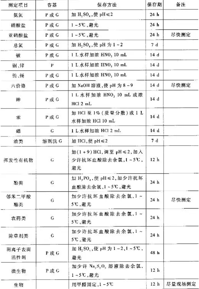 493-2009)中,還規(guī)定了測定放射學(xué)分析等水樣的保存方法。