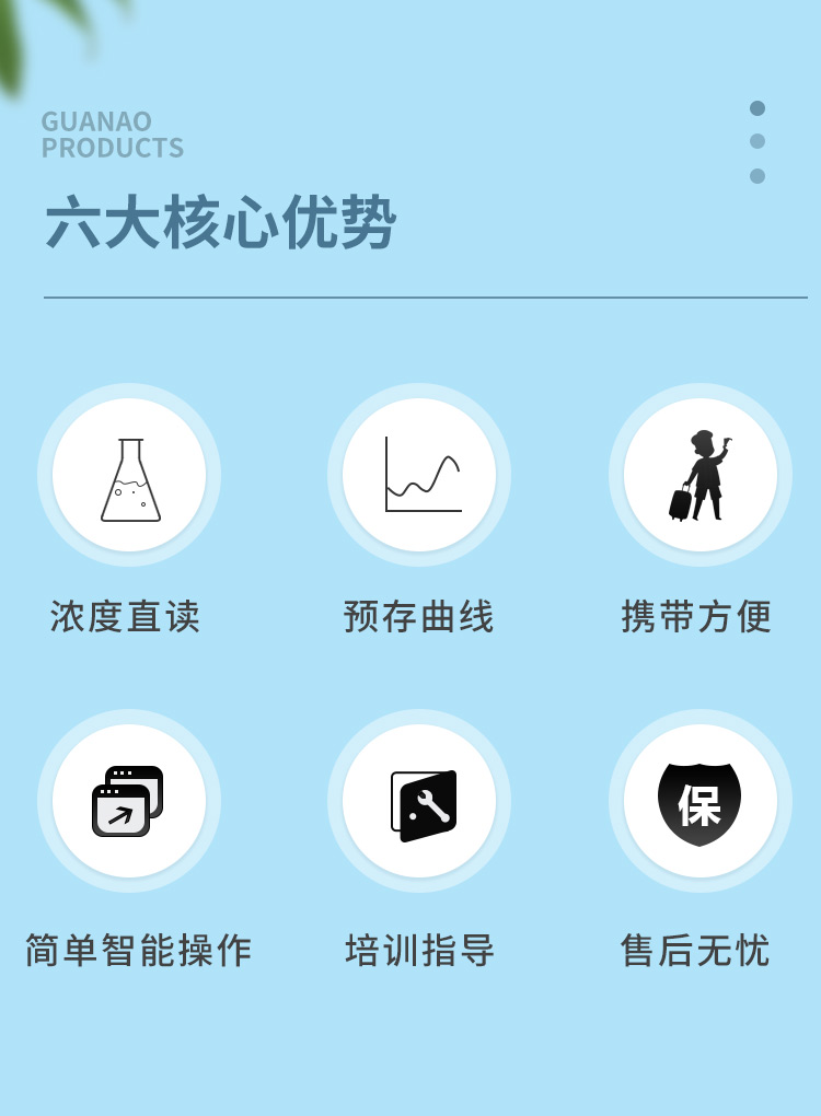 | 1 | 臭氧 | 0-2.50mg/L | 0.001mg/L | ±5%F·S |