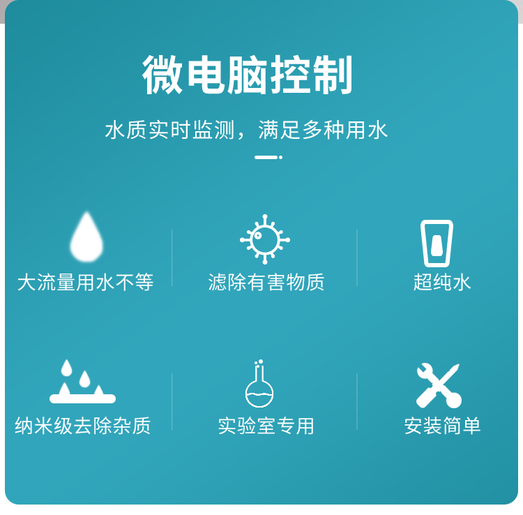 GA系列實(shí)驗(yàn)室純水機(jī)以反滲透和深度離子除鹽為制水工藝基礎(chǔ),設(shè)備直接連接城市自來水,可制備達(dá)到國(guó)標(biāo)GB6682-2008一級(jí)水質(zhì)的實(shí)驗(yàn)用超純水。