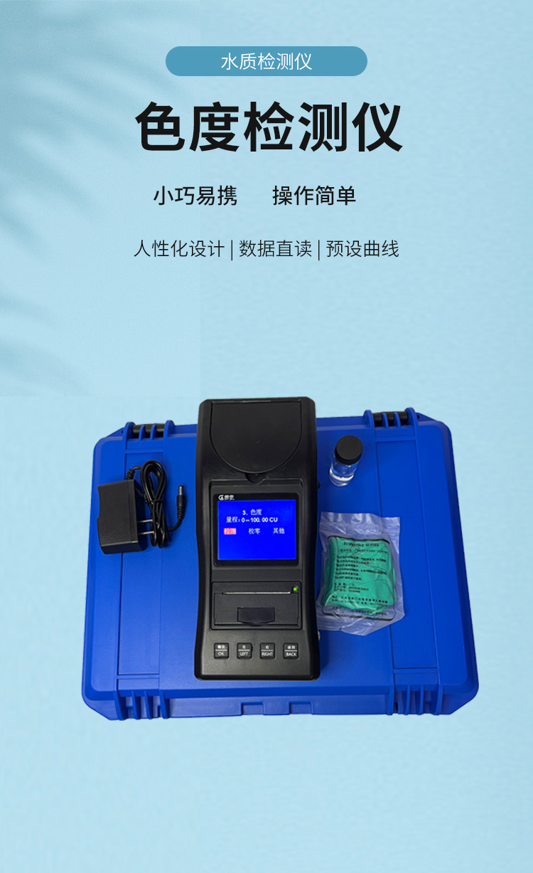 水質(zhì)色度是對(duì)天然水或處理后的各種水進(jìn)行顏色定量測(cè)定時(shí)的指標(biāo)。潔凈的天然水,在水層比較淺時(shí)為無(wú)色透明,水深時(shí)為淺藍(lán)色;水體中如果含有雜質(zhì),會(huì)使水呈現(xiàn)不同的顏色。例如,黏土能使水帶黃色;植物性有機(jī)物 溶于水中,使水呈現(xiàn)淡黃色乃至棕黃色;水中藻類大量存在時(shí)呈現(xiàn)綠色;鐵的氧化物會(huì)使水變褐色;硫