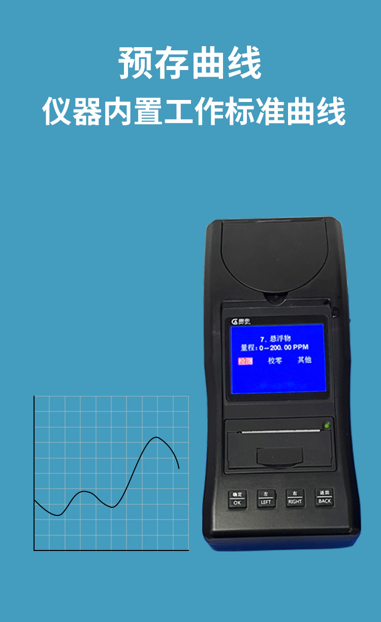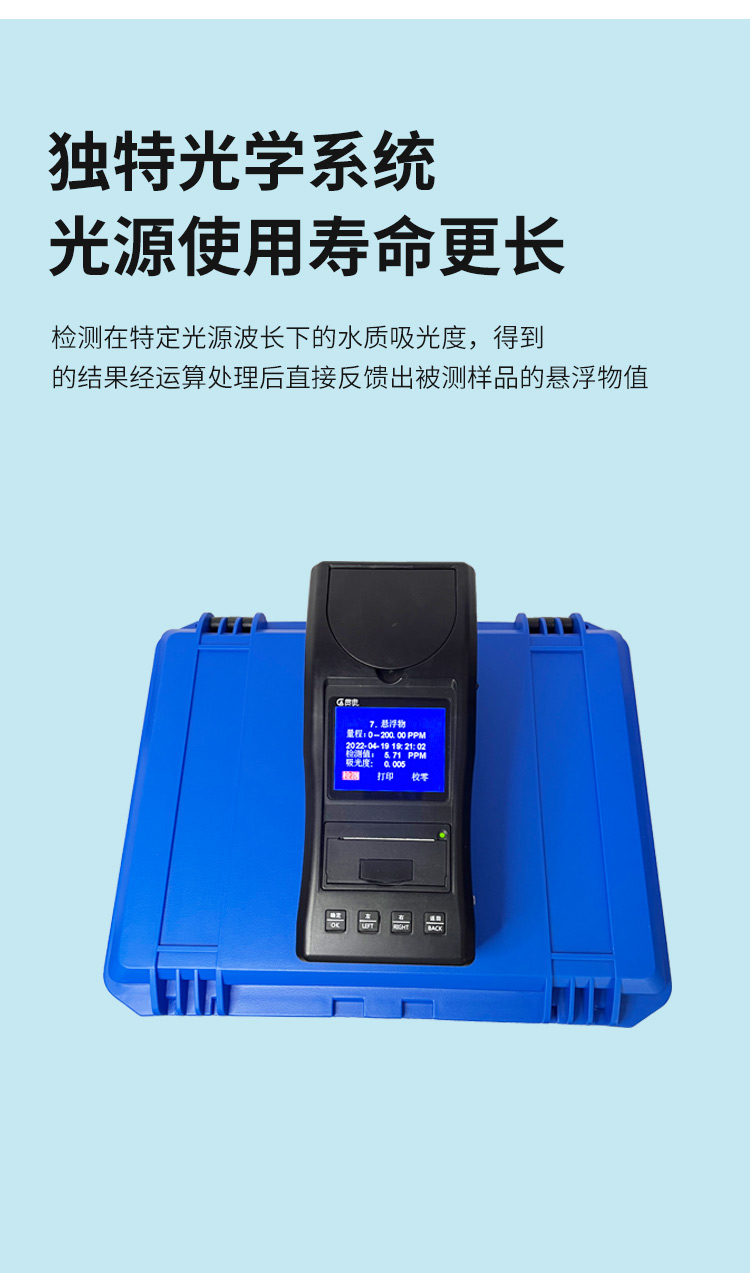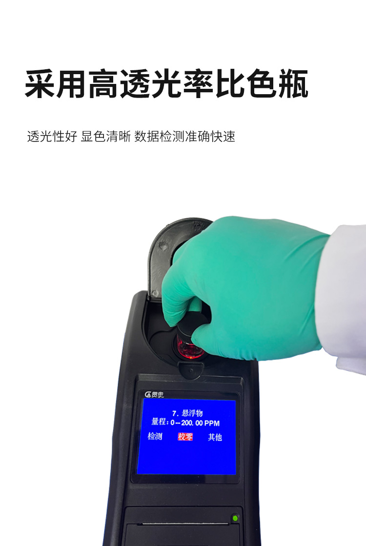 懸浮物水質檢測儀可快速準確測定地表水、地下水、城市污水及工業(yè)廢水中懸浮物指標,濃度直讀;可廣泛用于水廠、食品、化工、冶金、環(huán)保及制藥行業(yè)等部門。儀器是由單個的固定波長固定用途的分光光度計糅合而成的,采用分光光度法原理對各參數(shù)進行測量,在儀器中建立不同參數(shù)的濃度顯色程度與吸光度的線性曲線,儀器通過對顏色的辨別,得出被測水樣的濃度。本儀器采用全中文菜單,操作簡單易懂,使用方便快速測量準確度高。